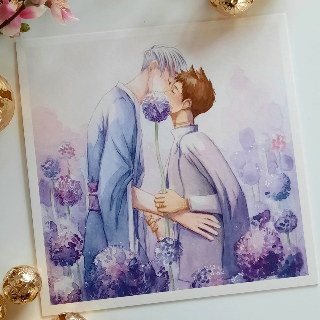 A mechanical pulp print of the "Allium" illustration. The print is extremely matte with a gorgeous soft cloudy texture profile.